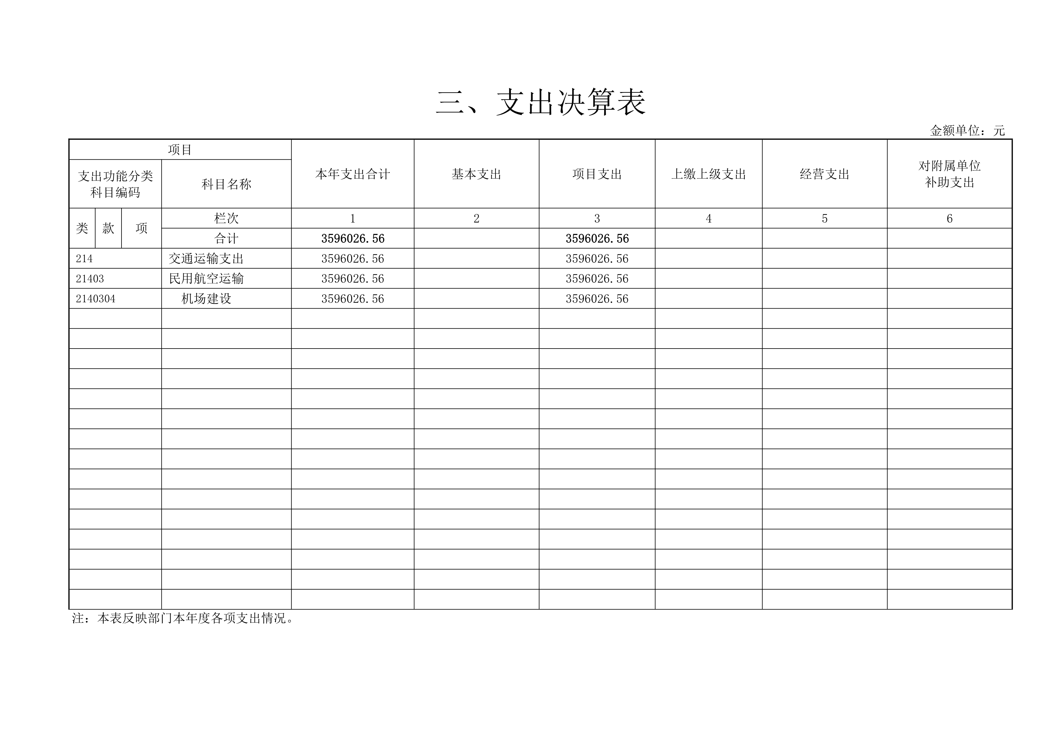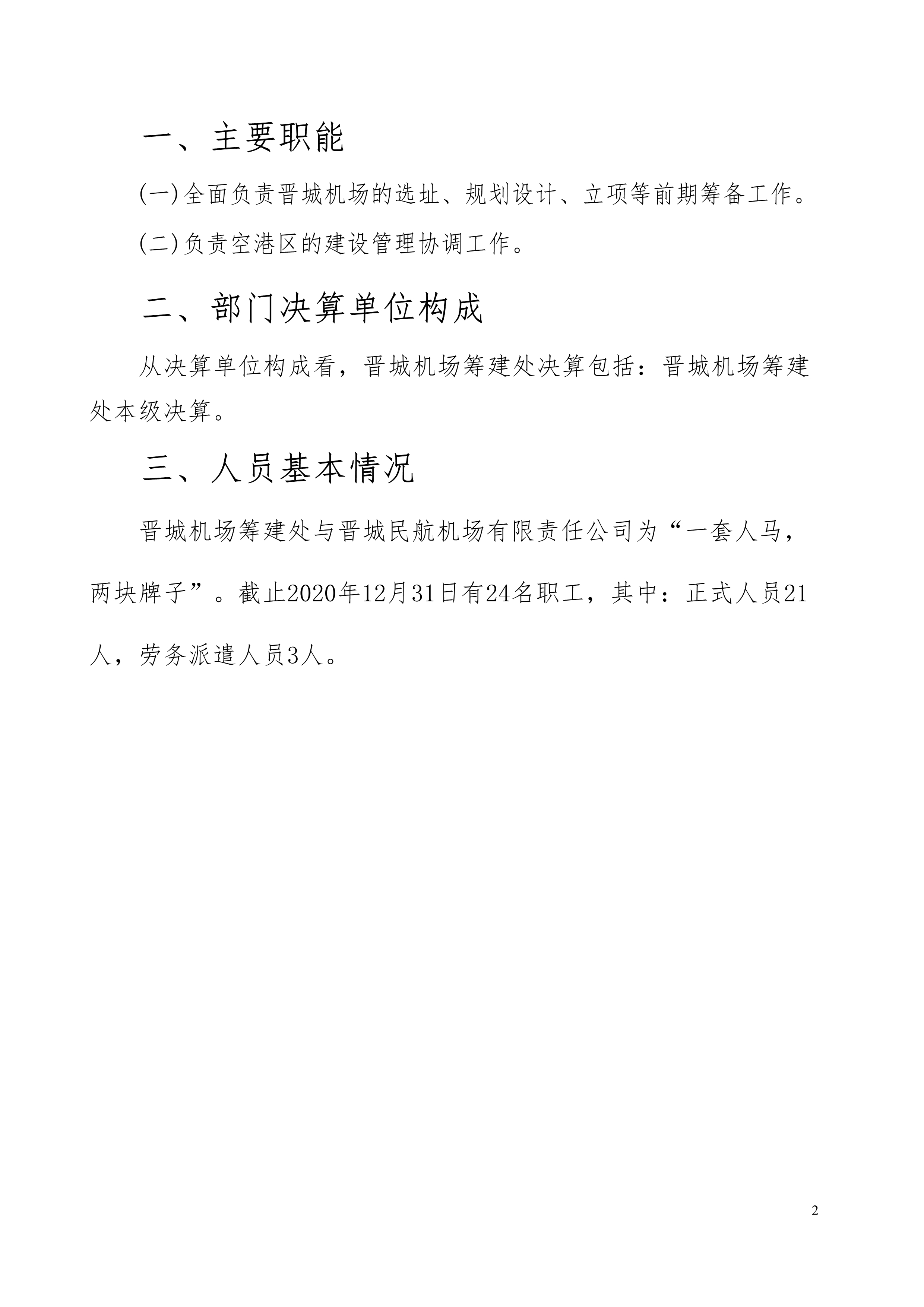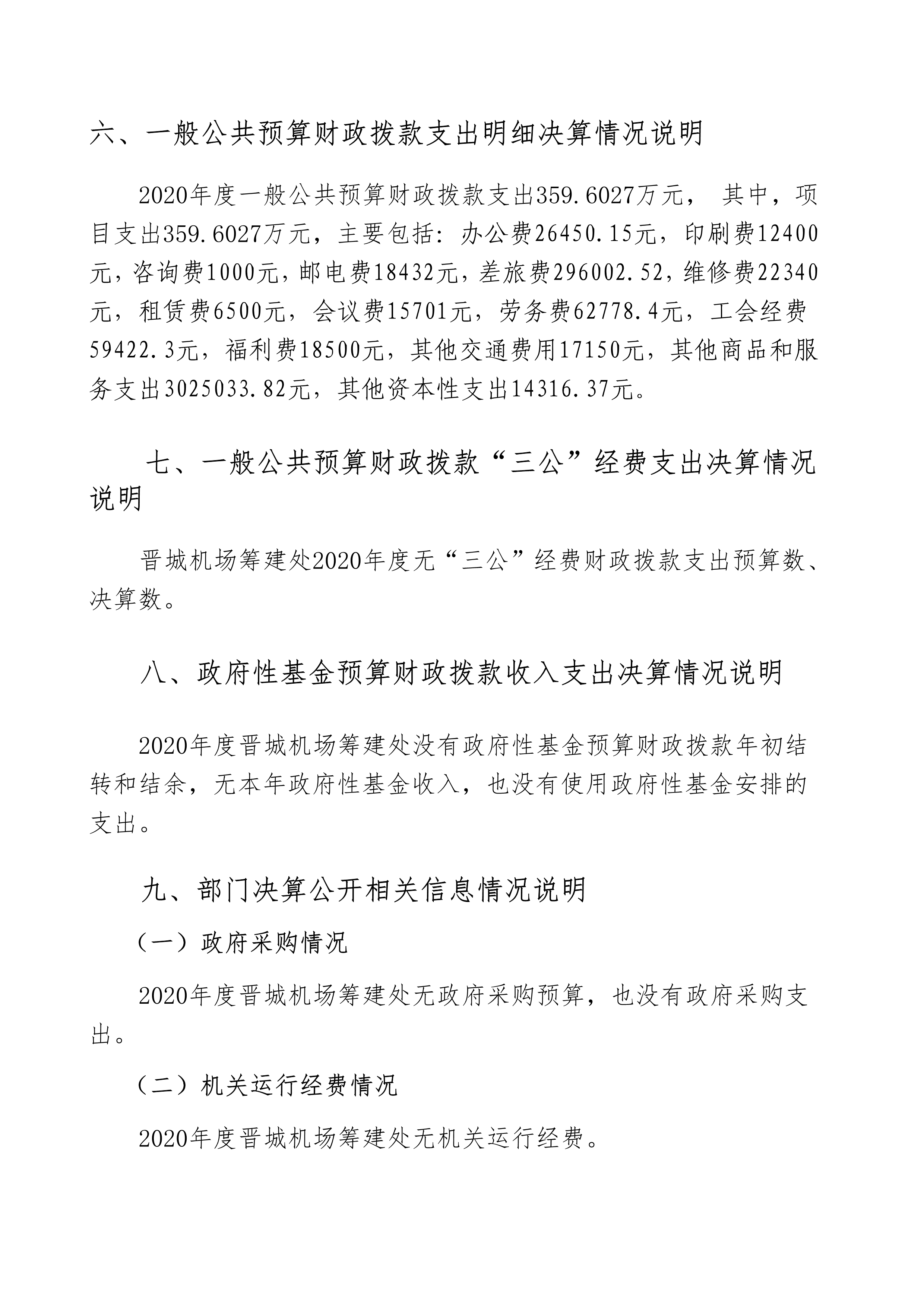 晉城機場籌建處2020年度決算公開