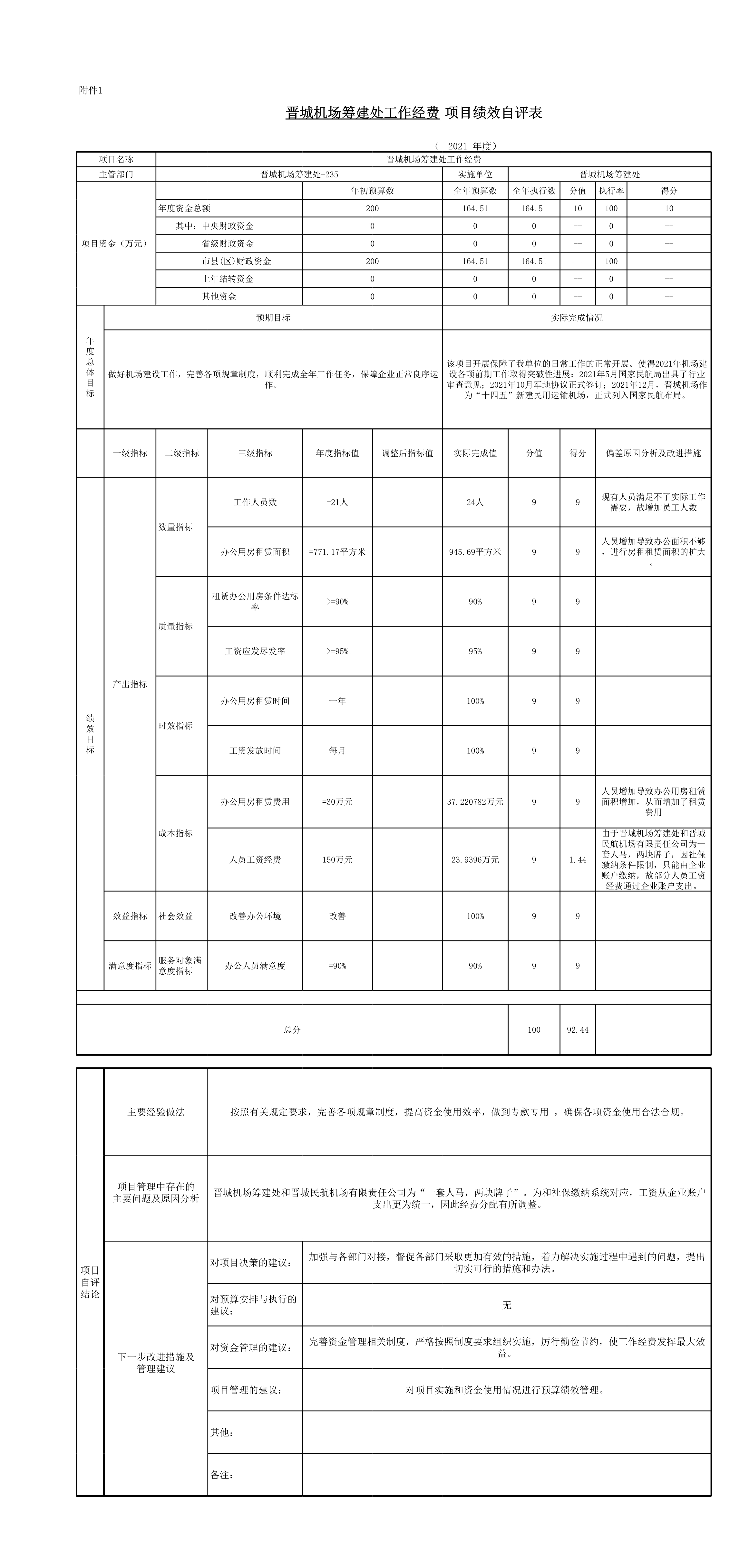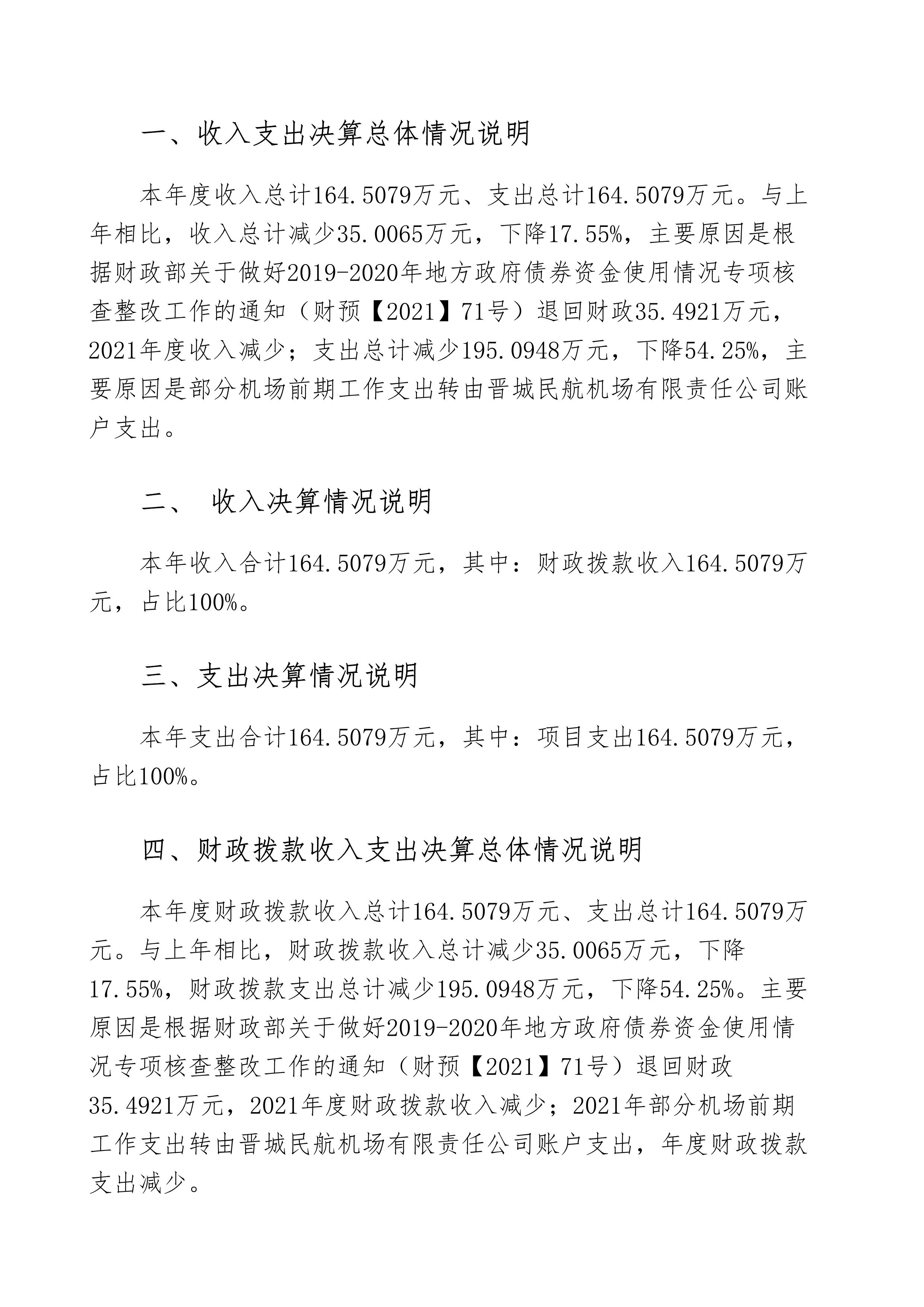 晉城機(jī)場(chǎng)籌建處2021年度決算公開(kāi)