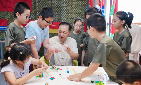 在剛健的軍事訓(xùn)練之外,傳統(tǒng)文化的滋養(yǎng)為暑托班增添了溫潤(rùn)的底色。皮影戲的光影流轉(zhuǎn)間,孩子們驚嘆于非遺技藝的奇妙;博物館專家走進(jìn)東航,用生動(dòng)的講解揭開(kāi)歷史文物的面紗,讓千年文化在孩子們眼中鮮活起來(lái);集體繪畫(huà)長(zhǎng)卷上,他們以童真筆觸勾勒出心中的祖國(guó)與東航;手工制作課上,面塑等傳統(tǒng)技藝的體驗(yàn),讓孩子們?cè)趧?dòng)手間感受先輩智慧。從傳統(tǒng)藝術(shù)到歷史底蘊(yùn),多元課程讓民族自豪感在孩子們心中油然而生。