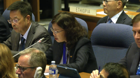 中國民用航空局副局長梁楠在大會(huì)上發(fā)言(國際民航組織官網(wǎng)直播畫面)